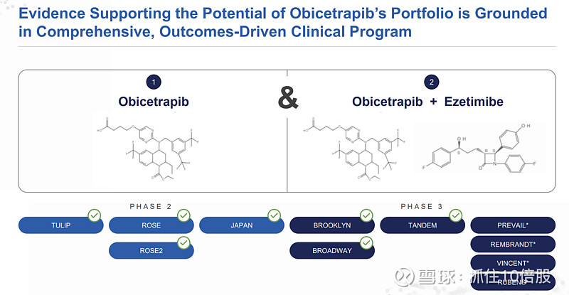Obicetrapib/Ezetimibe(依折麦布) 固定剂量复方(ObiEze, 10mg/10mg): 与依折麦布联用,旨在实现更强效的LDLC降低。