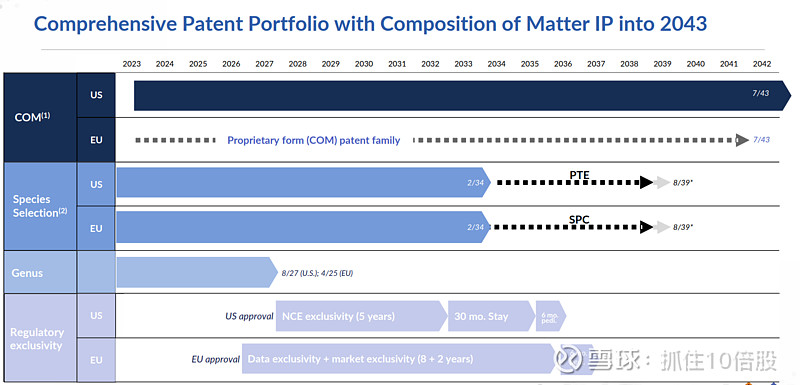 拥有坚固的专利壁垒,核心化合物专利保护期至2043年。