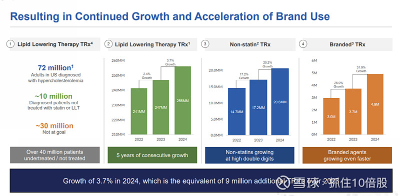 降脂治疗市场持续增长,非他汀类药物增长尤其迅速。