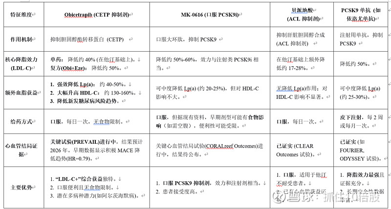 基于以上对比,可以清晰地勾勒出Obicetrapib在市场中的独特定位:
