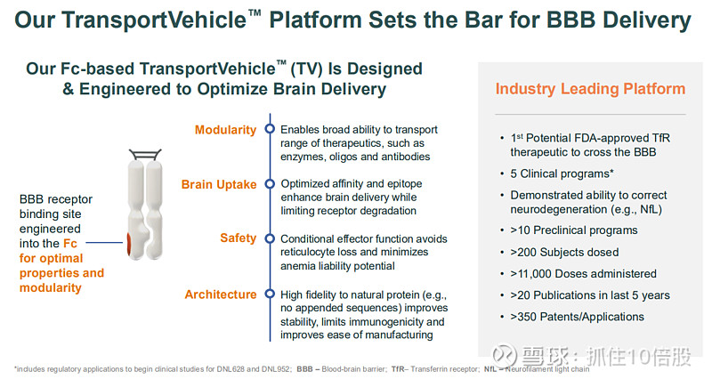 平台技术经过临床验证:TransportVehicle™是行业内临床验证最充分、数据最丰富的BBB递送技术,已在超200名受试者中施用超11,000剂,积累了超过5年的长期给药经验。