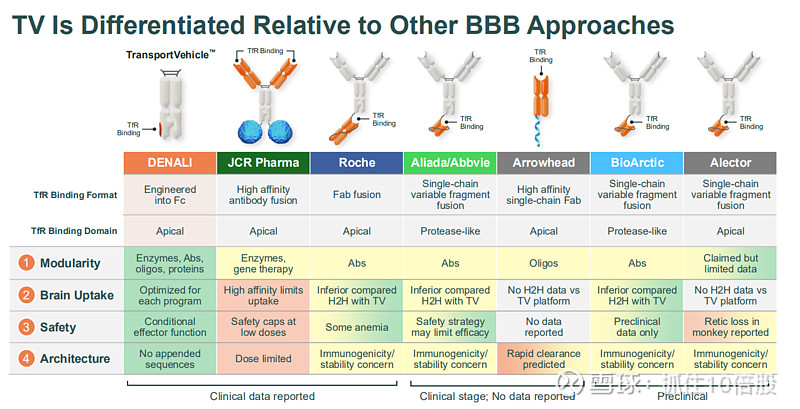 4. 稳定的架构:TfR结合域被工程化到抗体的Fc片段中,而非简单附加,这提高了分子的稳定性、降低了免疫原性风险,并简化了生产工艺。