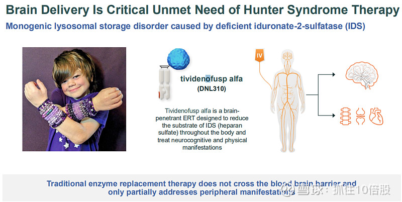 Tividenofusp alfa (DNL310)是一种能够穿透大脑的酶替代疗法,旨在降低体内所有部位的 IDS(硫酸乙酰肝素)含量,并治疗神经认知及身体方面的症状。
