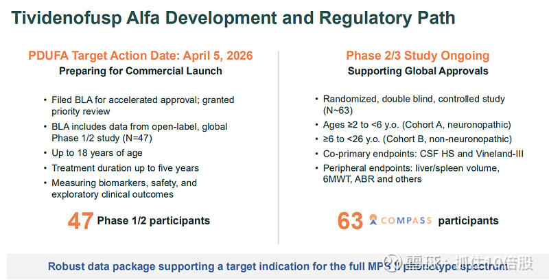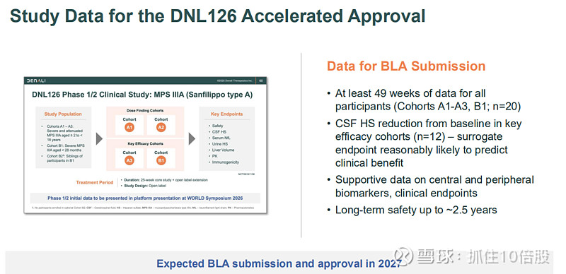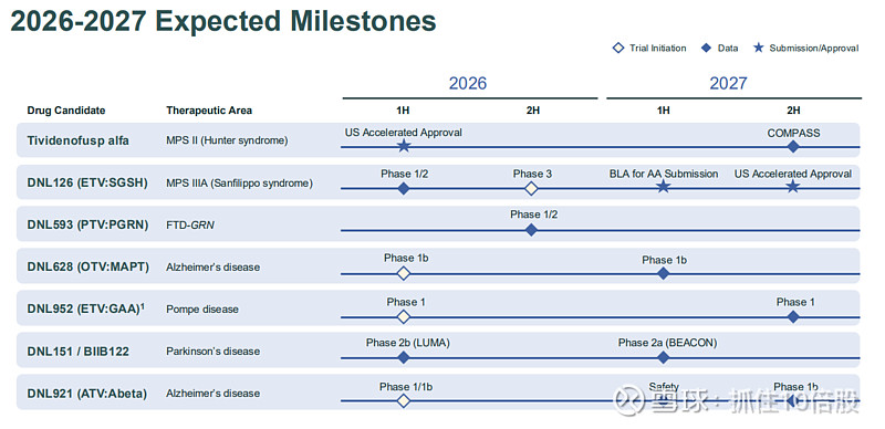 临近商业化拐点:首个产品tividenofusp alfa预计2026年获批上市,第二个产品DNL126(MPS IIIA)预计2027年获批,两者合计市场机会超过10亿美元。
