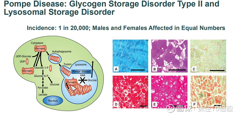 庞贝病(Pompe Disease)是一种渐进性、遗传决定的罕见病,以常染色体隐性方式遗传。其病因是GAA基因双等位突变,导致溶酶体中α-葡萄糖苷酶缺乏,进而引起细胞内糖原在溶酶体中不断累积。过去该病也被称为酸性麦芽糖酶缺乏症或糖原贮积病II型。