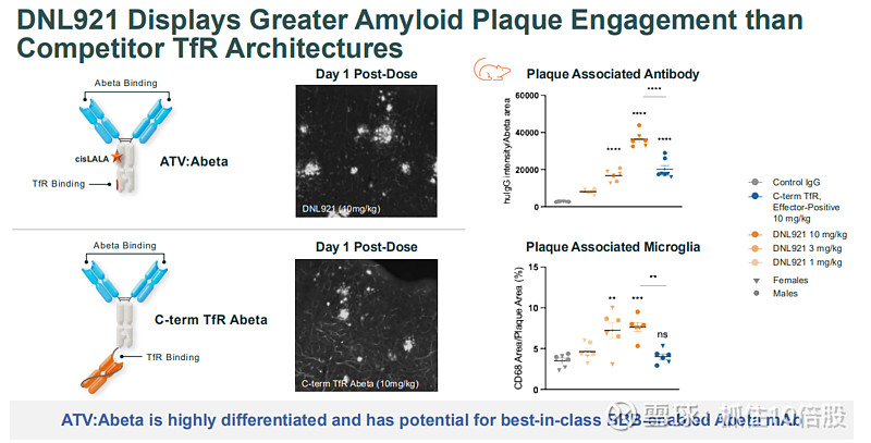 DNL921 (ATV:Abeta) - 靶向淀粉样蛋白,将抗Aβ抗体与TV融合,通过TfR介导高效入脑,旨在更快速、更安全地清除斑块。
