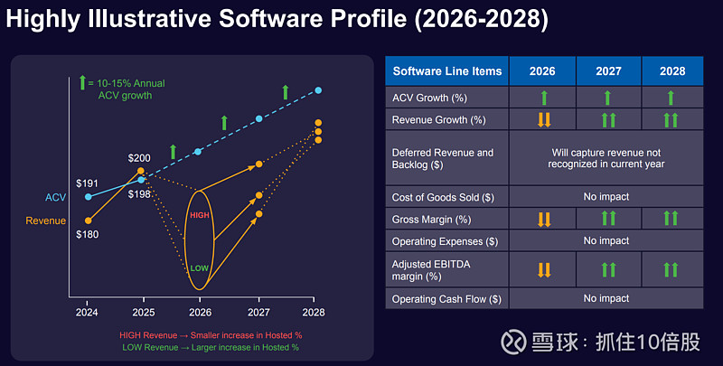 公司计划到2028年实现大部分软件合同向托管协议转换,届时收入确认将与ACV趋于一致,软件毛利率也将恢复至70%以上(目前为73%),长期来看将显著提升公司的盈利稳定性和估值逻辑。