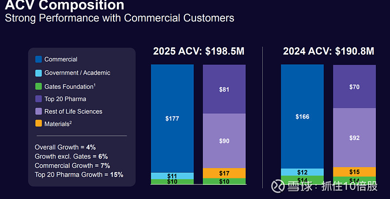 软件营收1.995亿美元,同比增长10.6%,虽增速较2024年有所放缓,但核心依托超1700家客户的存量续约及制药客户对“计算物理+AI”平台的支出增加,且软件毛利率维持73%的较高水平,成为公司现金流和营收的核心支撑。增速放缓主要受生物技术行业融资困难、制药客户规模扩张时机延迟影响,公司也因此将全年软件收入增长指引从10%-15%下调至8%-13%,符合行业整体环境。