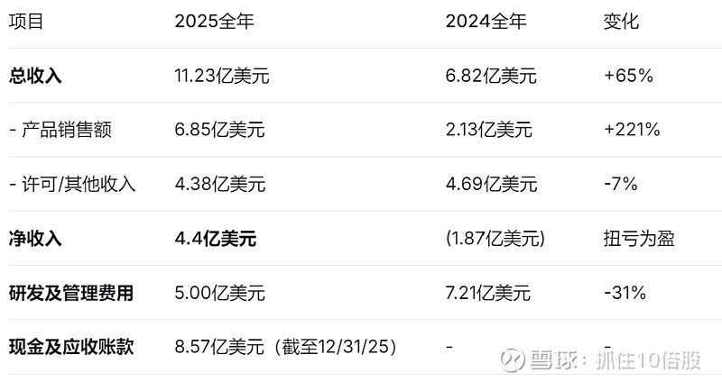 财务健康:2025年总收入11.23亿美元,同比增长65%;年末现金及应收账款8.57亿美元,叠加2026年第一季度新获8000万美元非稀释性资金,现金流可支撑至2028年。2026年预计调整后总收入2.3-2.7亿美元,核心研发及管理费用控制在3.1-3.4亿美元。
