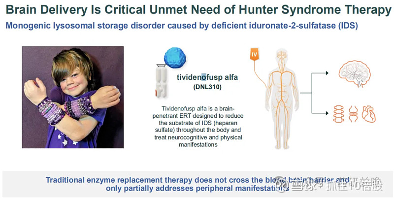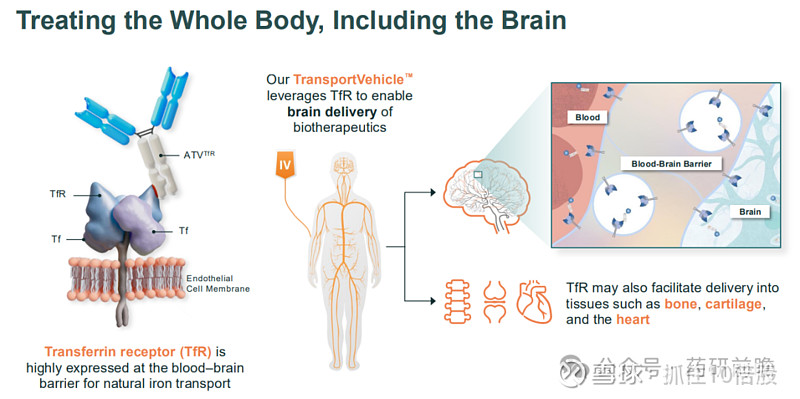AVLAYAH 由艾杜糖醛酸硫酸酯酶(IDS)与Denali公司专有的转运载体™(TV)平台融合而成,该平台与转铁蛋白受体(TfR)结合,通过受体介导的跨血脑屏障转胞吞作用,将 IDS 递送至外周组织和中枢神经系统。AVLAYAH 是首款获得美国食品药品监督管理局(FDA)批准、以转铁蛋白受体为靶点并专门设计用于跨血脑屏障的药物。