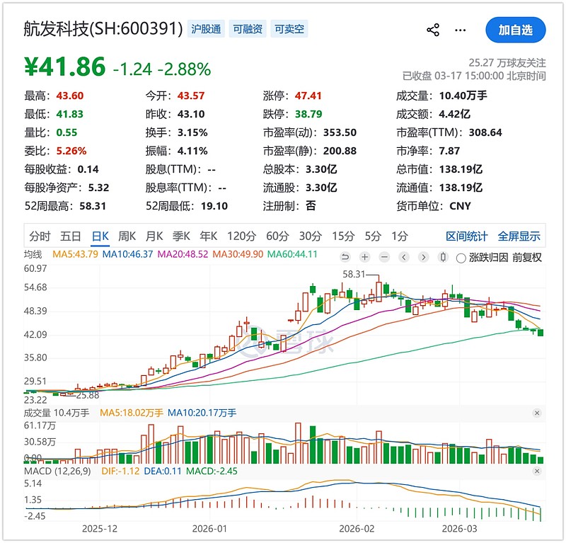 而且,群健航空还抱紧了航发动力的大腿,是航发动力战略供应商,曾获航发动力最佳交付奖、金牌供应商称号,中国航发集团优秀供应商。但凡了解过商业航天,就不会对航发动力感到陌生。放张股价图大家感受一下: