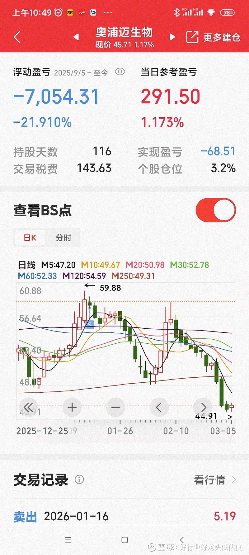 幸亏中间卖了一部分,但是现在仍亏二十多个点。。奥大爷,给个甜头吧