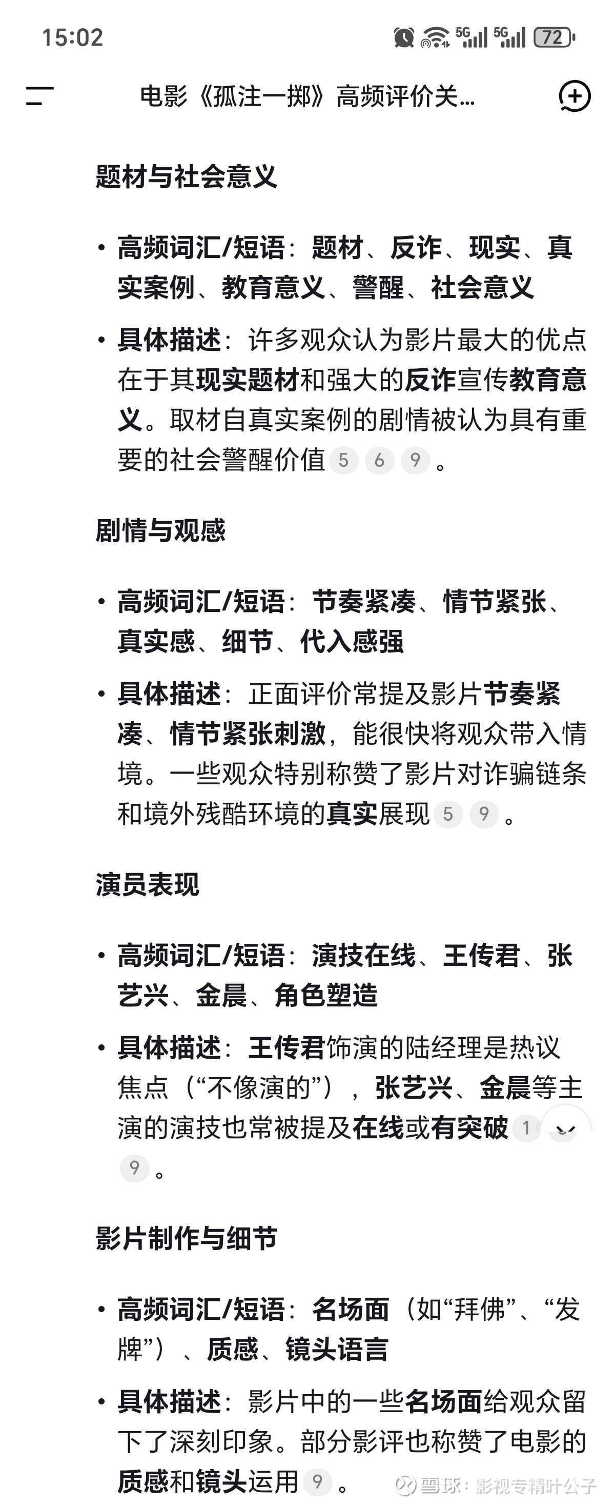 通过deepseek调取,《孤注一掷》豆瓣评分4-5星评价的高频关键词如下图(图1):