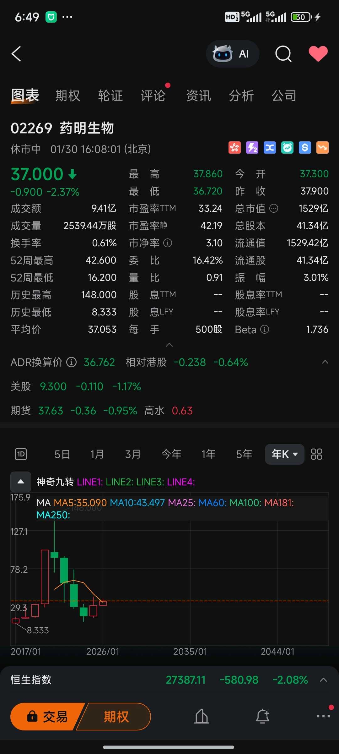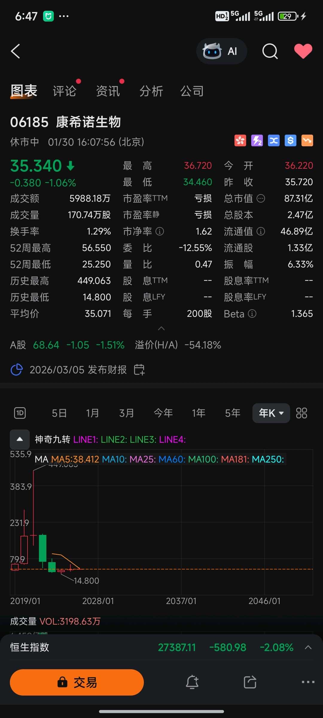 药明生物,康希诺生物,中国生物制药,君实生物年k线冲高之后 都是年线调整2-4年,然后上涨;