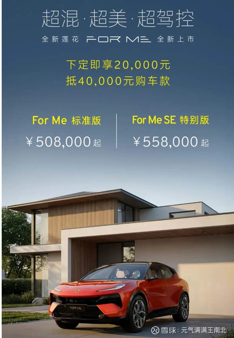 3月29日,莲花全新中大型超混 SUV——For Me 正式迎来上市,新车推出标准版与SE特别版两款车型,官方指导价分别为50.8 万元、55.8 万元。