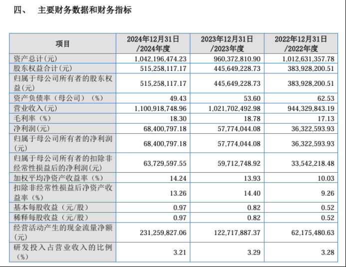 新天力目前的经营状况良好。报告期的业绩保持了稳步增长的势头。从2022年到2024年,公司的营业收入分别为9.44亿元、10.22亿元、11.01亿元;净利润分别为3632.26万元、5777.40万元、6840.08万元。