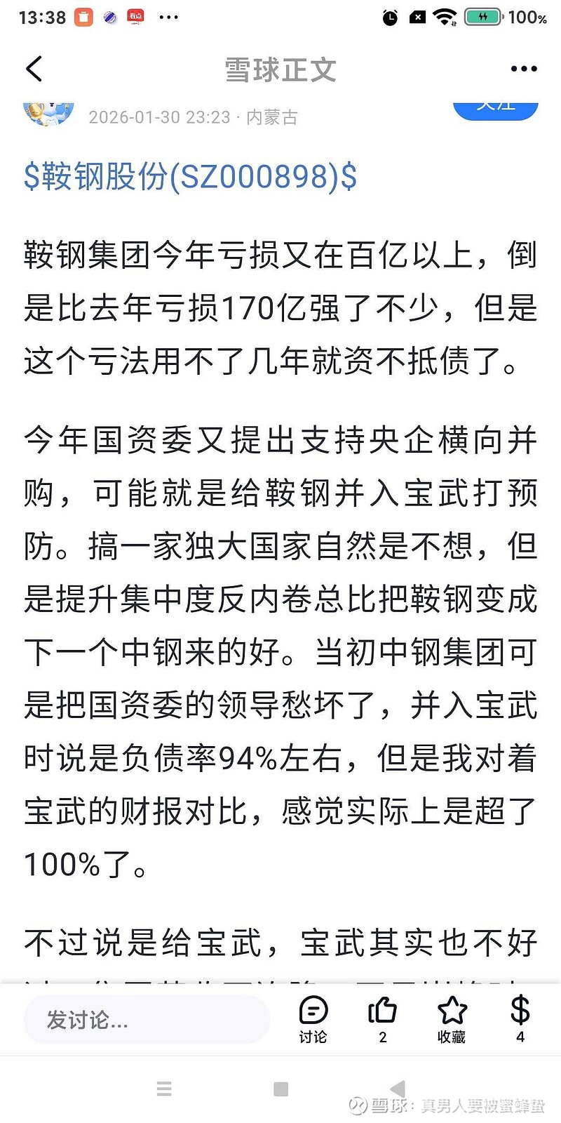 这家伙是不是不知道什么叫国企排名么?鞍钢那么大体量。已经合并鞍钢。本钢。抚钢。凌钢。武钢吞得下么?不怕被噎死。