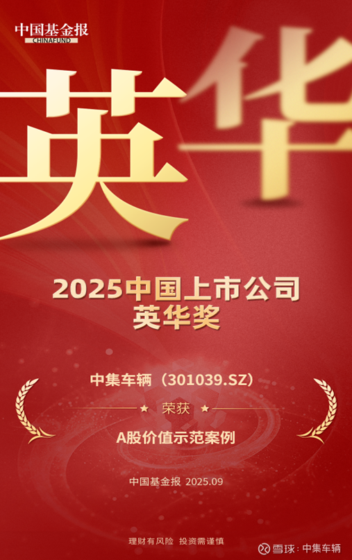 9月16日,由《中国基金报》主办的“2025中国资本市场发展论坛暨上市公司论坛”在上海举行。论坛上同时揭晓“2025中国上市公司英华奖”评选结果,中集车辆(集团)股份有限公司(301039.SZ)荣获“A股价值示范案例奖”。