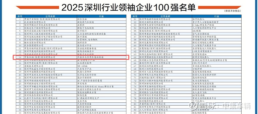 2025年9月26日,由深圳市工商业联合会(总商会)、深圳报业集团指导,深圳市行业领袖企业发展促进会与深圳商报/读创客户端共同主办的“2025深圳行业领袖企业100强”评选结果出炉。作为专用汽车行业的领军企业,中集车辆(301039.SZ)再次上榜!