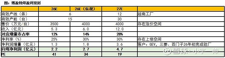 考虑涨价,我们预计公司26、27年净利润2.7、4.7亿元,34、19X PE,公司优势来自提前至越南布局产能、带来出口时间优势。考虑燃机需求景气度,给予27年30X PE,50%+空间。