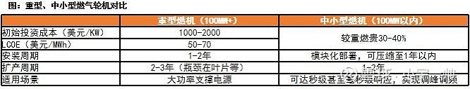 · 海外燃机:预计中小型燃机并联方案将先行落地,优势在于安装周期、扩产周期均更快,分别为1年以内、1-2年。中期维度,我们预计重型燃机、中小型燃机将并行扩产,重型燃机优势在于为AIDC提供成本更低的大功率支撑电源,中小型燃机优势在于可实现快速调峰调频、支撑电网。