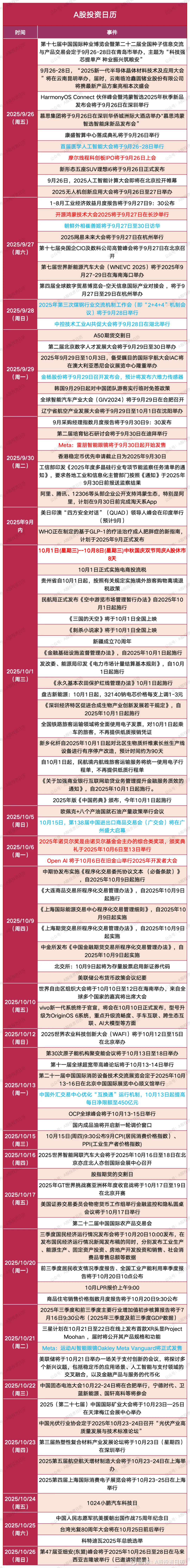 下一期将更新10月10大事件,更多未来事件,关注:“A股投资日历”。