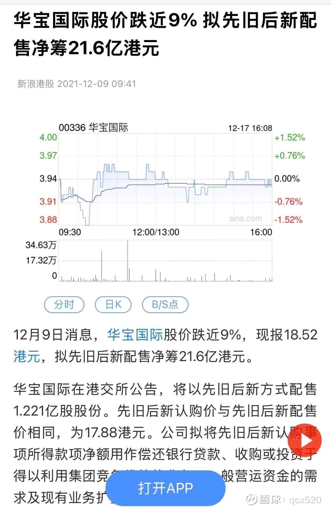 2021 年,华宝国际完成了一次 21.6 亿港币的定向增发,定增价格为 17.88 港元/股。
