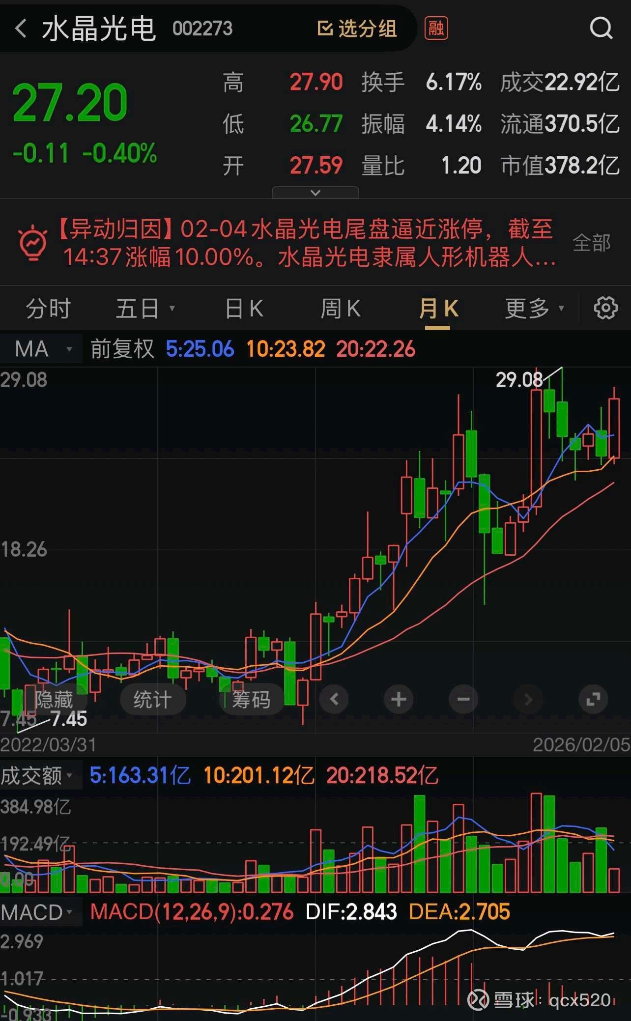 • 股价放量突破前高
