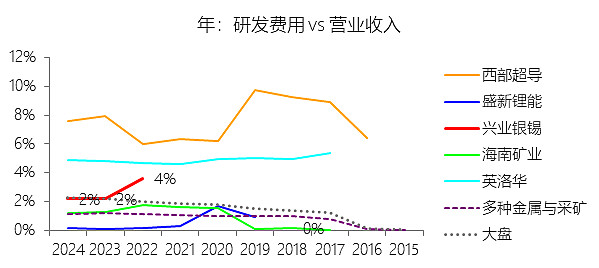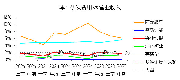 研发费用:2025年前三季,兴业银锡的研发费用为0.73亿元,同比增长19.63%,与营业收入的比例为1.78%(研发费用率),同比下降0.07个百分点;2015-2024年(十年),此项合计为2.54亿元,平均比例为1.26%,比多种金属与采矿行业的均值高0.28个百分点,长期呈上升趋势。