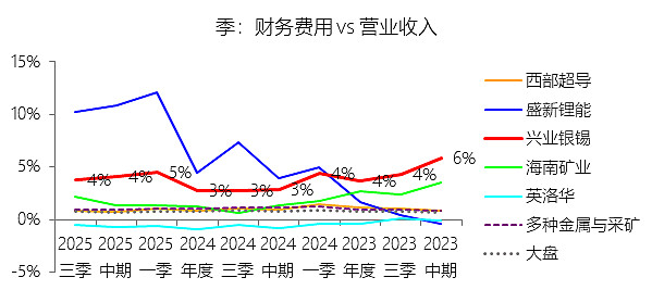 财务费用:2025年前三季,兴业银锡的财务费用为1.57亿元,同比增长73.46%,与营业收入的比例为3.82%,同比上升1.08个百分点;2015-2024年(十年),此项合计为13.28亿元,平均比例为6.60%,比多种金属与采矿行业的均值高5.39个百分点,长期呈下降趋势。