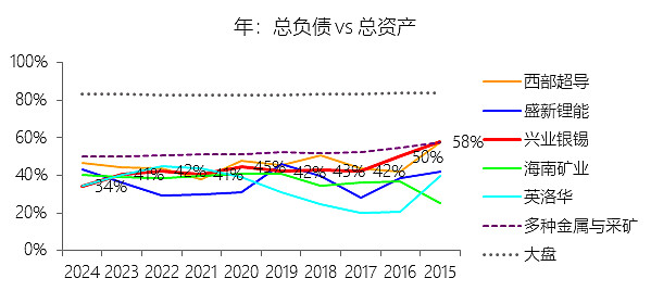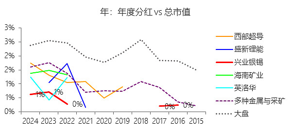 股息率:2024年,兴业银锡的股息率为0.63%,同比下降0.09个百分点;2015-2024年(十年),平均股息率为0.26%,比多种金属与采矿行业的均值低0.76个百分点,长期呈上升趋势。