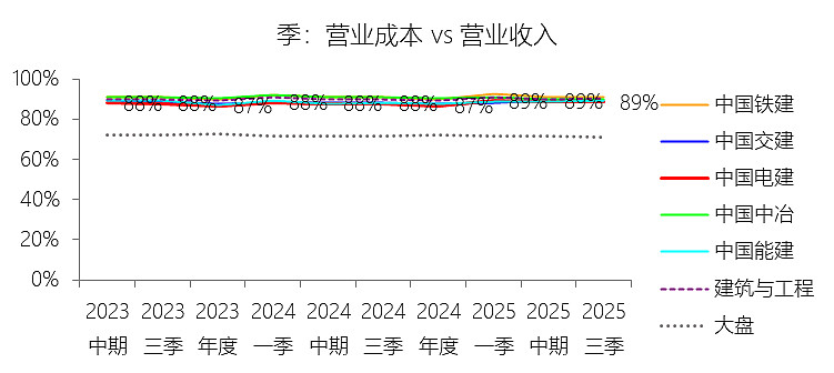 从经营层面看,公司收入规模依然处于建筑与工程行业第一梯队,长期保持高于行业平均的扩张能力,但近年收入与利润增速明显放缓,2025年前三季归母净利润同比下降,反映出行业需求趋弱、成本刚性上升及税费、非经常性损益波动对盈利形成阶段性压制。尽管如此,公司营业成本率、期间费用率长期仍优于行业均值,显示其在水利水电、抽水蓄能及新能源工程领域的技术壁垒和组织能力尚未动摇,盈利下行更多属于周期与结构叠加的结果,而非核心竞争力衰退。