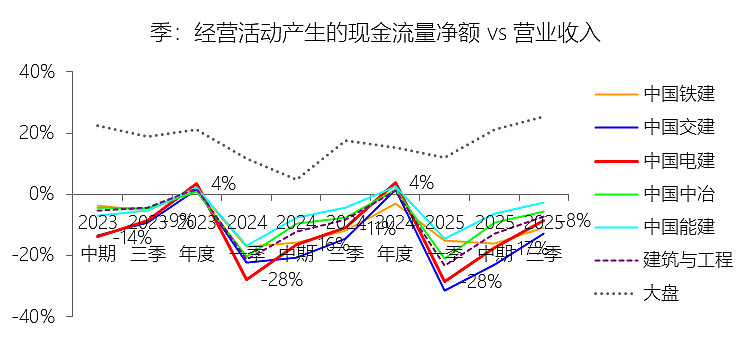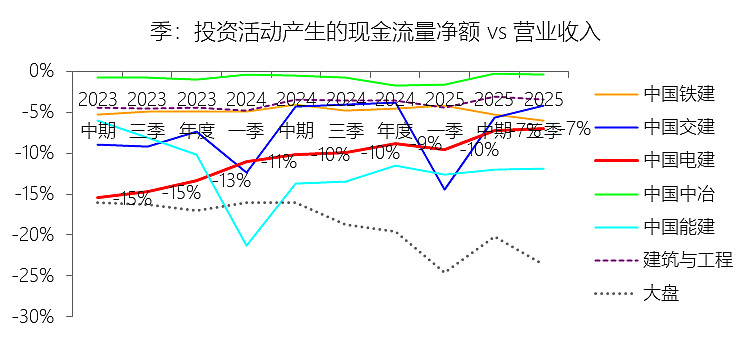 从资产与现金流结构看,中国电建“重资产、长周期”的特征尤为突出。无形资产和特许经营权占比显著高于行业平均,体现出新能源与能源基建投建营模式的长期属性,这一结构有助于锁定未来现金流,但也导致资本开支强度大、投资回收周期长。投资活动现金流长期为大额净流出,虽然2025年前三季有所收敛,但仍对负债率和融资依赖形成持续压力;同时,应收与项目资金沉淀决定了公司现金流波动性高于一般制造业企业,增长更多依赖资产扩张而非高周转模式。