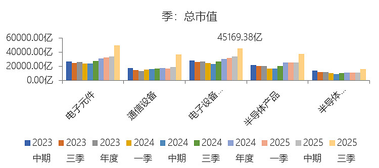 市值增长率:2025年第三季末,电子设备和仪器的总市值为45169.38亿元,对比年初增长48.59%,增速同比(去年同期)上升34.32个百分点;2015-2024年(九年)增长157.74%,年复合增长11.09%,比信息技术行业的复合增速低0.63个百分点,长期呈下降趋势。增速短期上升主要由于2025年前三季度受益于AI算力需求的全球性爆发以及半导体周期的强劲回暖,行业基本面展现出极强的增长韧性,净利润同比增长达28.34%,这种业绩端的爆发式增长极大地提振了二级市场的预期,吸引了资本的大规模流入,叠加国家对精密仪器及半导体设备等核心环节自主可控的政策红利持续释放,带动了行业估值倍数的快速修复。增速长期下降主要由于2015-2024年间行业逐渐从智能手机带动的爆发式成长期进入存量博弈的成熟阶段,随着市场基数的持续放大,早期的估值泡沫逐步出清,资本市场对该行业的评估逻辑从单纯的“高增长驱动”转向“业绩与现金流驱动”,且由于长期毛利空间受成本上升挤压,使得市值增长的斜率随行业生命周期的演进而趋于平缓。增速低于信息技术行业的复合增速主要由于电子设备和仪器行业具有鲜明的“硬科技”重资产属性,其产能建设周期长、资本开支大,且受全球贸易波动和制造环节毛利收窄的影响更为直接,相比之下,广义信息技术行业中涵盖了更多高弹性、轻资产、且具备极强规模经济效应的软件服务及互联网业务,这些细分领域在资本市场往往能获得更高的风险偏好和估值溢价,从而在长周期内拉高了信息技术全行业的平均表现。