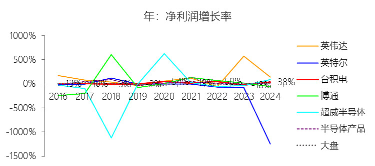 净利润增长率:2025年,台积电的净利润为558.14亿美元,同比增长54.1%,增速同比上升16.33个百分点;2015-2024年(九年)增长291.33%,年复合增长16.37%,比半导体产品行业的复合增速高1.84个百分点,长期呈上升趋势。
