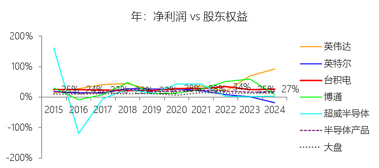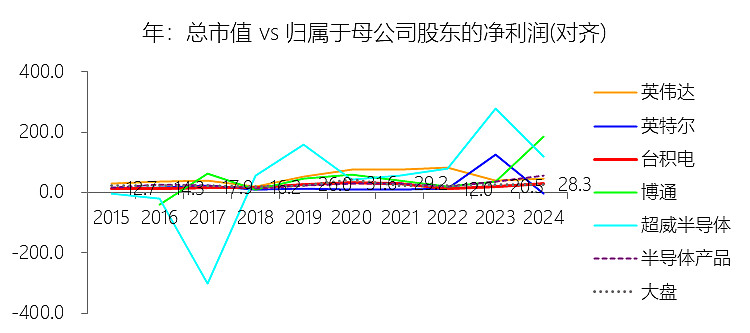 市盈率:2025年,台积电的归属于母公司股东的净利润(对齐)为558.95亿美元,对比年初增长54.21%,总市值与归属于母公司股东的净利润(对齐)的比例为28.2倍(市盈率),同比下降0.06个倍数;2015-2024年(十年),此项合计为1884.65亿美元,平均比例为21.8倍,比半导体产品行业的均值低8.2个倍数,长期呈上升趋势。