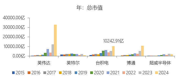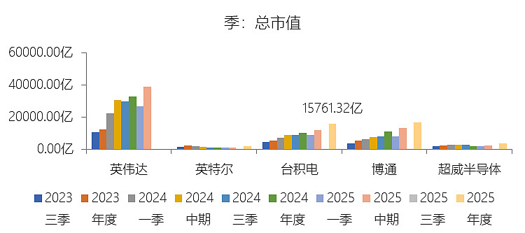 市值增长率:2025年末,台积电的总市值为15761.32亿美元,对比年初增长53.88%,增速同比(去年同期)下降36.02个百分点;2015-2024年(九年)增长768.17%,年复合增长27.14%,比半导体产品行业的复合增速低5.3个百分点,长期呈上升趋势。增速短期下降主要由于2024年市场对AI赛道的预期处于爆发初期,导致当年的市值增速基数极高,而2025年虽然台积电凭借3纳米和5纳米制程的强劲需求以及AI加速器的贡献实现了53.88%的市值增长,但市场估值逻辑趋于理性,叠加全球地缘政治风险的考量以及对高资本开支压制自由现金流的担忧,使得增速较去年同期有所回落;增速长期上升主要由于台积电过去十年间营业收入增长251.3%且利润持续攀升,凭借在先进制程上的技术垄断地位和从28纳米到3纳米的快速迭代,成功锁定了5G、HPC及AI等全球大趋势带来的结构性增长红利,通过卓越的制造能力和客户信任构建了极高的竞争壁垒,驱动了企业内在价值的稳步增长;增速低于半导体产品行业的复合增速主要由于行业平均水平受到了英伟达等轻资产、高弹性芯片设计巨头市值呈几何倍数扩张的拉动,而台积电作为资本密集型的重资产代工企业,尽管其营收增速高于行业平均水平,但其估值乘数受到产能扩张周期长、地缘政治溢价折扣以及重资产属性下利润率波动的制约,在市值增长的爆发力上略逊于部分顶尖的设计端同行,导致其复合增速未能跑赢行业整体。