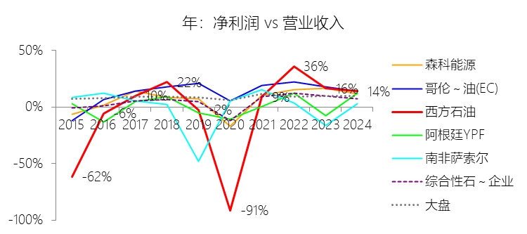 净利润增长率:2025年,西方石油的净利润为23.69亿美元,同比减少23.03%,增速同比上升11.42个百分点,长期呈下降趋势。