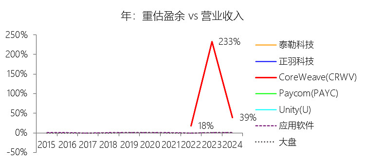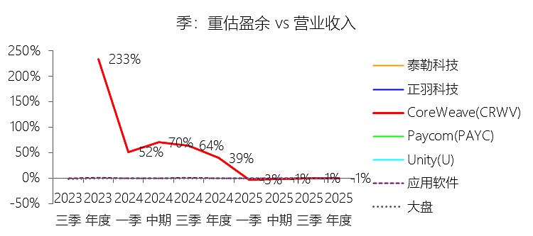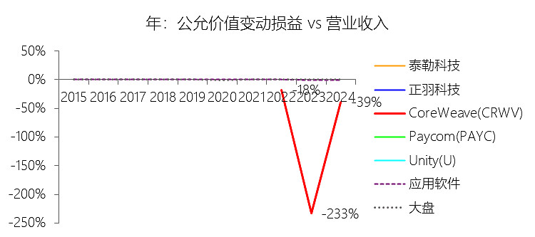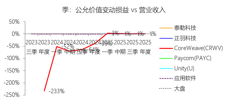 重估盈余:2025年,CoreWeaveInc-A的重估盈余为-0.27亿美元,与营业收入的比例为-0.53%,同比下降39.99个百分点;2015-2024年(十年),此项合计为12.93亿美元,平均比例为59.84%,比应用软件行业的均值高59.66个百分点,长期呈上升趋势。