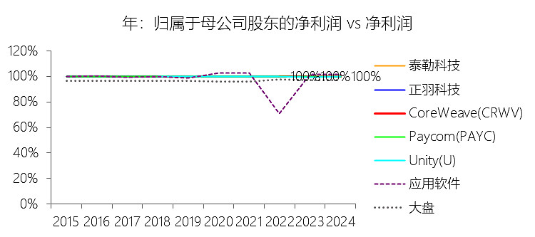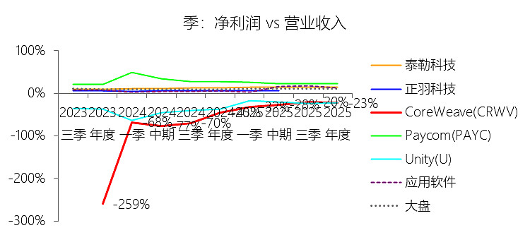 归属于母公司股东的净利润:2025年,CoreWeaveInc-A的归属于母公司股东的净利润为-11.67亿美元,绝对值同比增长35.16%,与净利润的比例为100.00%,同比持平;2015-2024年(十年),此项合计为-14.88亿美元,平均比例为100.00%,比应用软件行业的均值低2.21个百分点,长期呈持平趋势。