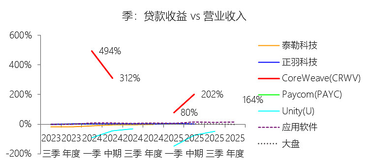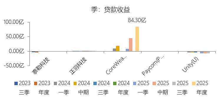 贷款收益:2025年,CoreWeaveInc-A的贷款收益为84.30亿美元,与营业收入的比例为164.30%,同比上升164.3个百分点;2015-2024年(十年),此项合计为零亿美元,平均比例为0.00%,与应用软件行业的均值持平,长期呈持平趋势。