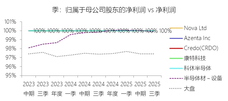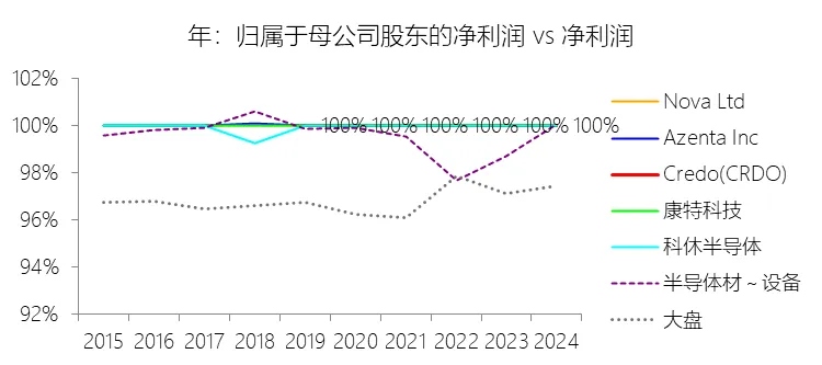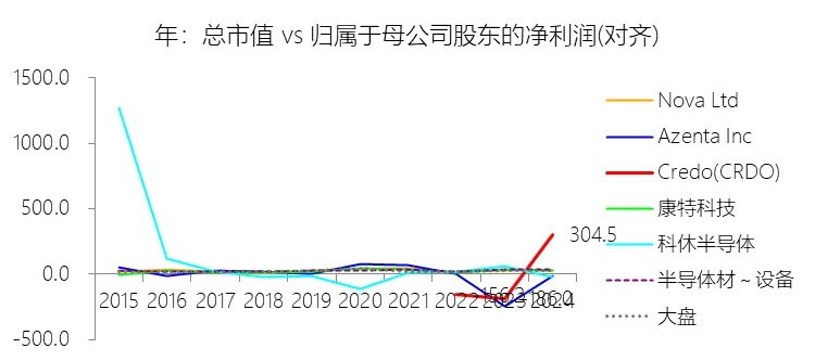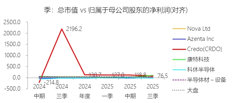 归属于母公司股东的净利润:2026财年前三季,CredoTechnologyGroupHoldingLtd的归属于母公司股东的净利润为3.03亿美元,同比增长1844.07%,与净利润的比例为100.00%,同比持平;2016-2025财年(十年),此项合计为-0.41亿美元,平均比例为100.00%,比半导体材料与设备行业的均值高0.72个百分点,长期呈持平趋势。