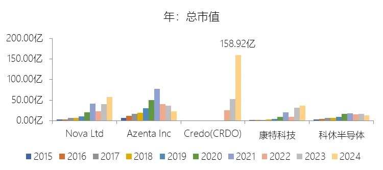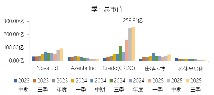 市值增长率:2026财年第三季末,CredoTechnologyGroupHoldingLtd的总市值为259.91亿美元,对比年初增长281.14%,增速同比(去年同期)上升56.3个百分点;2016-2025财年(九年)增长514.78%,年复合增长147.95%,比半导体材料与设备行业的复合增速高119.81个百分点,长期呈上升趋势。增速短期上升主要由于公司业绩的爆发式增长及资本市场的强烈看好,2026财年前三季,随着AEC(有源电缆)产品在超大规模数据中心客户中的持续大规模部署,公司营业收入同比增长达236.69%,且由于规模效应释放,净利润激增至3.03亿美元,实现了盈利能力的跨越式提升;同时,公司在2026财年期间完成了总额约7.36亿美元的ATM(市价发行)股票融资,并成功收购了Hyperlume公司以扩展微缩LED光互联技术储备,这些积极的业务扩张信号显著增强了投资者信心,推动股价和市值快速冲高。增速长期上升主要由于公司通过技术创新成功主导了高速连接细分赛道,在过去九年间,公司实现了从单一IP授权向以AEC和IC为核心的系统级产品业务的战略转型,产品收入占比持续攀升并成为核心增长点;凭借专有的SerDes和DSP技术,公司在成熟工艺节点上实现了领先的性能与功耗效率(n-1优势),并将其客户基础扩展至全球所有七家领先的超大规模数据中心运营商,使其长期增长逻辑建立在AI和全球网络流量指数级增长的确定性之上。增速高于半导体材料与设备行业的复合增速主要由于公司深耕的高速互连细分领域具备远超半导体行业整体水平的增长弹性,其中超大规模数据中心400G及800G端口市场的年复合增长率预计高达49%;作为AEC产品类别的开创者和业内唯一能提供全套高性能连接解决方案的企业,公司在解决AI基础设施带宽瓶颈方面拥有极强的竞争优势,这种高成长、轻资产的Fabless模式结合AI驱动的超前投入需求,使得其市值扩张速度显著领先于包含传统制造设备商和材料供应商在内的行业均值。