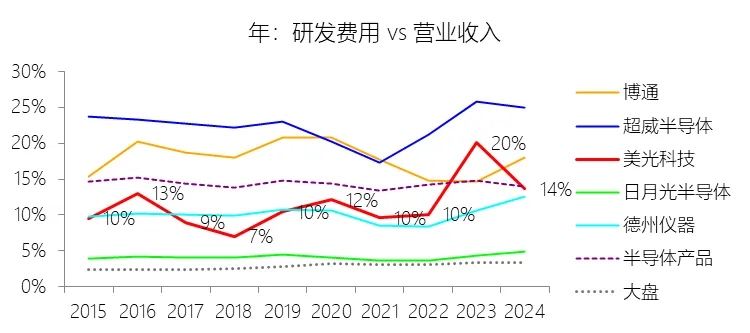 研发费用:2026财年中期,美光科技的研发费用为24.21亿美元,同比增长35.55%,与营业收入的比例为6.46%(研发费用率),同比下降4.2个百分点;2015-2024财年(十年),此项合计为244.86亿美元,平均比例为10.97%,比半导体产品行业的均值低3.33个百分点,长期呈上升趋势。