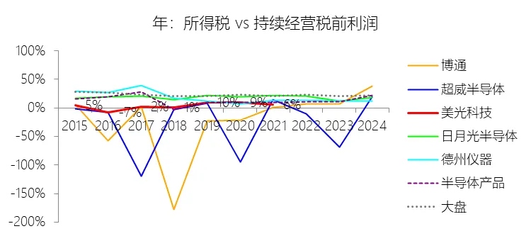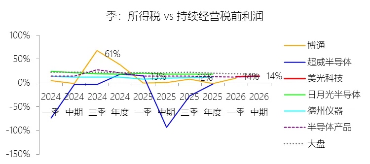 所得税率:2026财年中期,美光科技的所得税为32.00亿美元,与持续经营税前利润的比例为14.40%(所得税率),同比上升14.4个百分点;2015-2024财年(十年),此项合计为18.25亿美元,平均比例为4.32%,比半导体产品行业的均值低8.59个百分点,长期呈上升趋势。