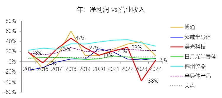 营业收入增长率:2026财年中期,美光科技的营业收入为375.03亿美元,同比增长123.74%,增速同比上升64.86个百分点;2015-2024财年(九年)增长55.08%,年复合增长5%,比半导体产品行业的复合增速低6.74个百分点,长期呈下降趋势。增速短期上升主要由于人工智能(AI)驱动的内存和存储需求加速增长且超过了行业供应,特别是在数据中心市场对高带宽内存(HBM)、高容量双列直插内存模块(DIMM)及低功耗服务器DRAM的强劲需求下,美光科技成功实现了产品结构向高价值细分市场的转型,并受益于DRAM和NAND产品价格、销售量及利润率的显著回升。增速长期下降主要由于存储行业固有的高度周期性,在2015至2024财年期间,公司多次遭遇全球供需失衡、严重的客户库存纠正及宏观经济低迷,尤其是2023财年因行业环境剧烈恶化、需求疲软和价格大幅下跌导致营业收入同比大幅缩水49%;同时,中国网络安全审查决定(CAC决定)对公司在中国市场的业务机会产生了显著负面影响,地缘政治带来的贸易限制及对特定大客户的销售禁令也削弱了长期的增长势头。增速低于半导体产品行业的复合增速主要由于存储产品的平均售价(ASP)长期存在剧烈波动且下降趋势明显,其价格侵蚀的速度往往超过公司通过工艺技术改进所能实现的每吉比特成本降幅;此外,存储市场面临极其激烈的竞争,行业参与者为保持竞争力不断进行大规模资本支出以扩张产能、提高良率和缩小芯片尺寸,这种持续的全球供应扩张在需求未能同步增长时,会引发比其他半导体细分行业更严重的产能过剩和价格下行压力,进而影响了公司的长期复合增长表现。