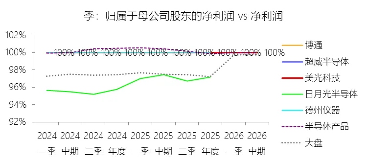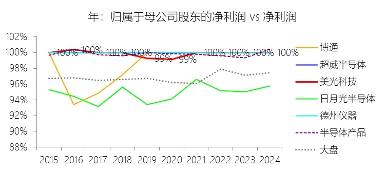 归属于母公司股东的净利润:2026财年中期,美光科技的归属于母公司股东的净利润为190.25亿美元,同比增长450.97%,与净利润的比例为100.00%,同比持平;2015-2024财年(十年),此项合计为403.40亿美元,平均比例为99.82%,比半导体产品行业的均值低0.02个百分点,长期呈下降趋势。