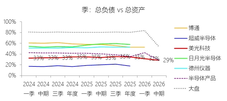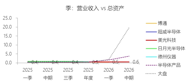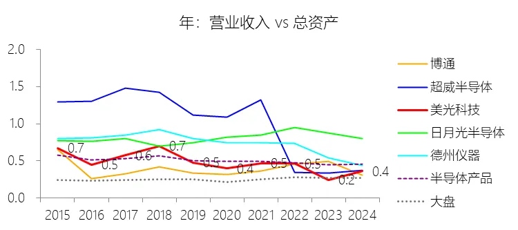 总资产周转率:2026财年Q2 TTM,美光科技的总资产周转率为0.6次,同比上升0.14次;2015-2024财年(十年),平均总资产周转率为0.5次,比半导体产品行业的均值低0.04次,长期呈下降趋势。