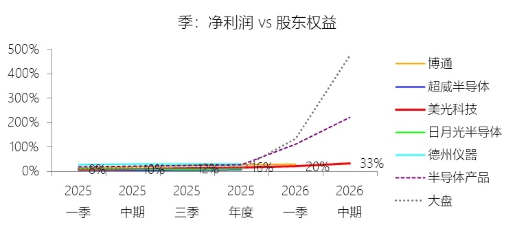 净资产收益率:2026财年中期末,美光科技的股东权益为724.59亿美元,对比年初增长33.77%,净利润与股东权益的比例为33.28%(TTM净资产收益率),同比上升23.67个百分点;2015-2024财年(十年),此项合计为3378.77亿美元,平均比例为11.96%,比半导体产品行业的均值低6.86个百分点,长期呈下降趋势。