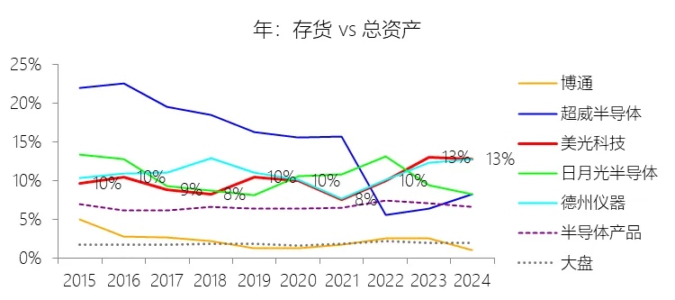 总资产增长率:2026财年中期末,美光科技的总资产为1015.09亿美元,对比年初增长22.6%,增速同比(去年同期)上升17.36个百分点;2015-2024财年(九年)增长187.52%,年复合增长12.45%,比半导体产品行业的复合增速低2.19个百分点,长期呈下降趋势。增速短期上升主要由于人工智能(AI)驱动的内存和存储需求爆发式增长,直接带动了公司业务规模的快速扩张,使得2026财年中期应收账款因营业收入的大幅增加而激增至173.14亿美元,同时公司为满足数据中心及HBM市场的旺盛需求,持续加大资本支出力度,预计2026财年资本性开支将超过250亿美元,推动了物业、厂房及设备(PP&E)等固定资产的显著增长;此外,美光通过收购力积电晶圆厂等外延扩张手段,以及经营活动产生的现金流大幅改善带来的现金余额增加(达139.08亿美元),共同推高了短期总资产水平。增速长期下降主要由于存储行业固有的高度周期性及频繁的市场波动,导致公司在行业低迷期频繁遭遇资产价值缩水,例如2023财年因严重供过于求计提了18.3亿美元的存货跌价准备和1.01亿美元的商誉减值,且美光在过去十年中多次通过剥离非核心资产(如出售Lehi晶圆厂及新加坡200mm晶圆厂资产)来优化资产负债表,这在一定程度上冲抵了资产的规模性扩张;同时,地缘政治带来的贸易限制及CAC决定对中国市场业务的负面影响,也减缓了公司在特定关键市场的长期资产布局和扩张步伐。增速低于半导体产品行业的复合增速主要由于存储器产品具有较强的大宗商品属性,其平均售价(ASP)的波动性和侵蚀速度远超逻辑或模拟等其他半导体细分行业,这使得美光在同样规模的资本支出下,其资产增值效率及转化出的营收规模在周期底部更容易受损。此外,存储市场面临极端激烈的全球竞争,公司必须在持续的技术节点迭代中投入巨额资金以维持生存,而在行业供需失衡时,为了维持供应纪律,美光等存储巨头往往需要比其他半导体领域更频繁地削减资本开支和限制产能增长,这种周期性的扩张制约使其长期资产复合增长率略逊于半导体产品行业的整体表现。